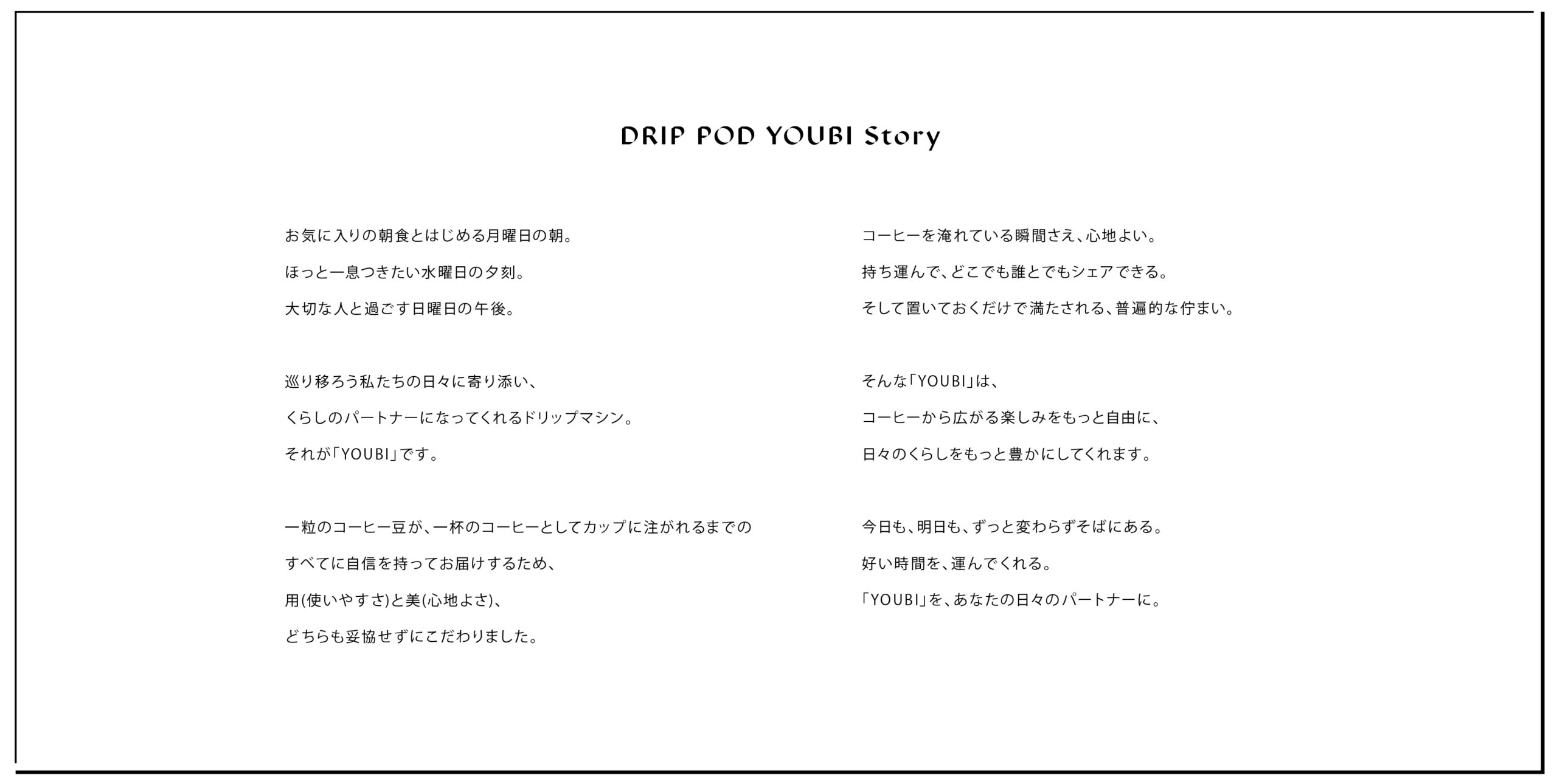 「日本に新しいコーヒータイムを根付かせたい」と掲げて10年。DRIP PODは機能や価格で選ばれることが多く、まだ届かない層がいることを実感していた。時間がなくても美味しいものを選びたい、妥協したくない、美意識の高い人たち。そんな“味と暮らしの審美眼”を持つ層にも、簡単に本格的なコーヒーを届けたいという想いから、このプロジェクトが始まった。