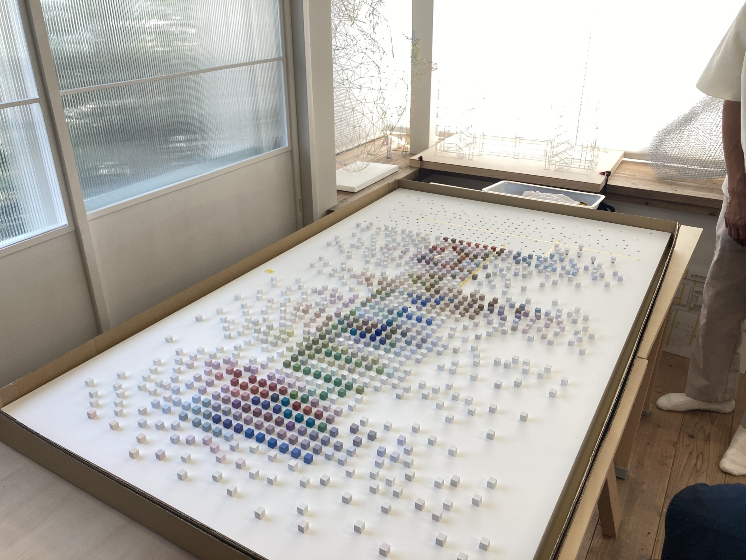 コンセプトブックには、策定したMVVと、それを形にした施工事例写真、そして社員が自社の特徴を語る対談記事を載せ、すべてがMVVとの繋がりを感じられる内容とした。特徴的なのは、ミッションを表現するアートをつくりその写真を掲載したこと。象徴的なそのページは、読む人に意味を考えさせ、面白そうな会社だと興味をひく狙いもある。お客様の繋がりのあるアーティストに依頼するなど、今回のPJそのものがお客様らしい”繋がり”を大切にした進め方であり、形になったブックやアートからだけでなく、プロセスを含めインターアームらしさが再認識できるPJとなった。