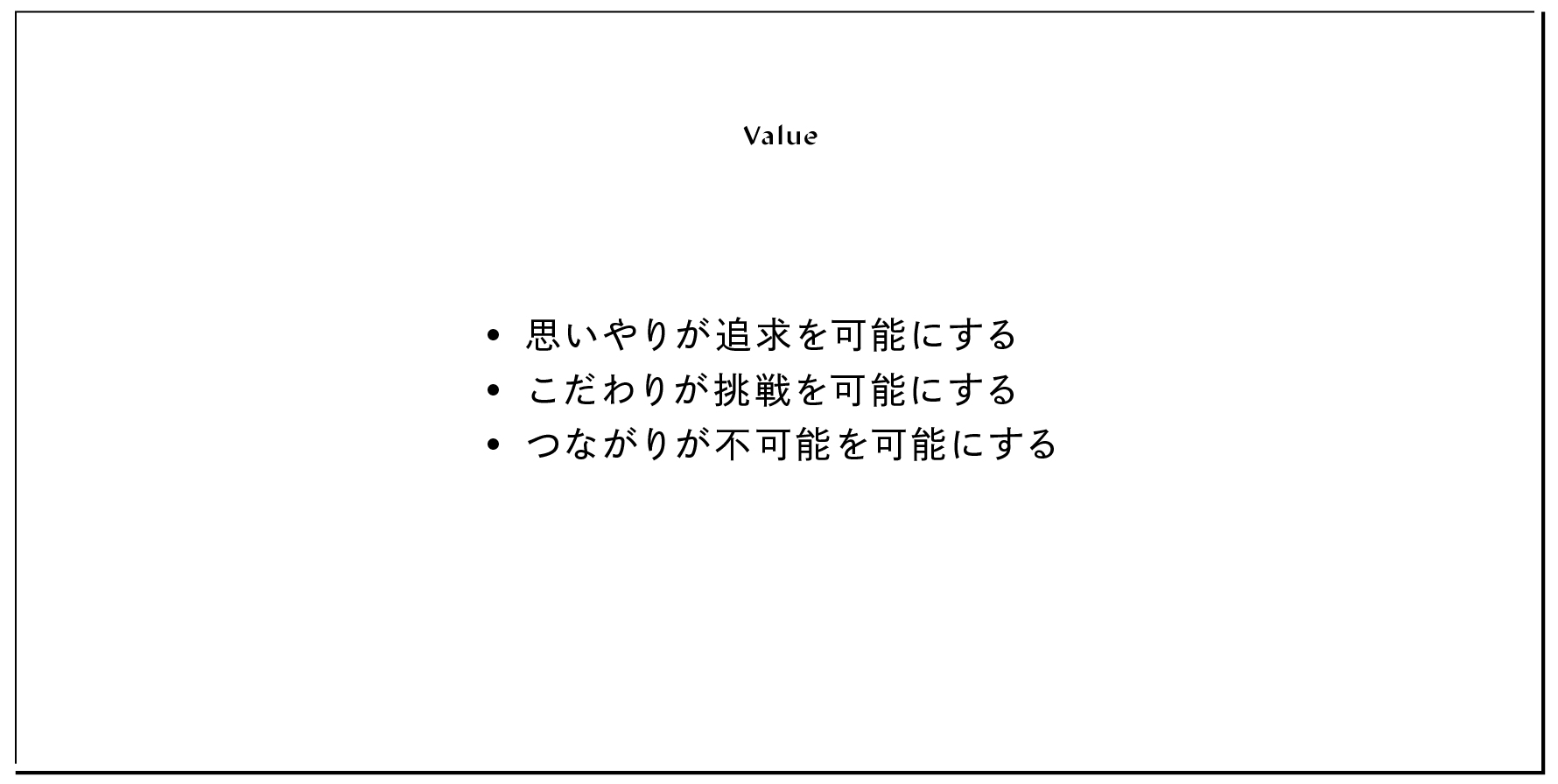 社長様と中核を担う社員様数名への取材を実施後、弊社からMVV案をご提案。フィードバックをお客様からいただく中で見えてきたのは、「めざすオフィスのあり方」や「顧客との関係性」に対する共通点でした。個性の発揮の仕方は人それぞれだが、その共通する根本が自社の特徴である。何となく認識していたことが、言語化することでお客様の中でも確信に変わっていきました。