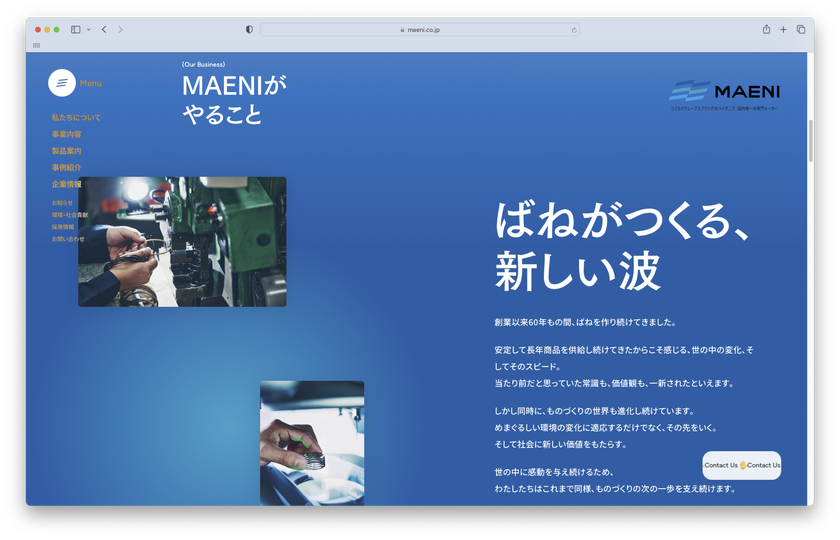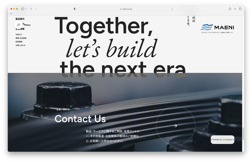ギフトがブランディングをお手伝いした、株式会社MAENI様のウェブサイトが、第45回日本BtoB広告賞のウェブサイト<製品PR>の部で銅賞を受賞しました。MAENI様は、社名変更から、CI、VI、営業車のデザイン等リブランディング一式をお手伝いさせていただいており、その一環で制作させていただいたサイトです。お客様も喜んでいただけました。